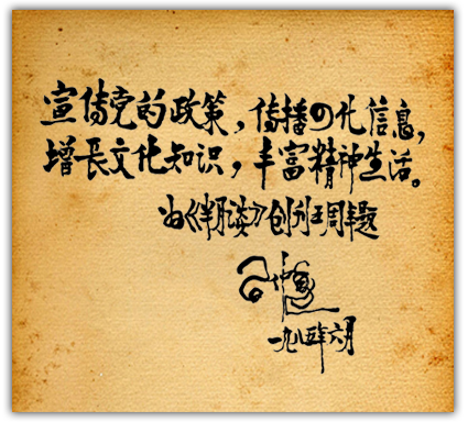 1985年6月 時任中共中央政治局委員、中央書記處書記習仲勛為半月談題詞:宣傳黨的政策,傳播四化信息,增長文化知識,豐富精神生活。