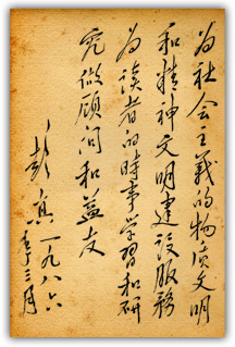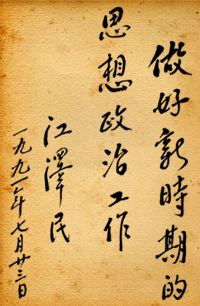 1991年7月 時任中共中央總書記江澤民為"半月談思想政治工作創(chuàng)新"題詞:做好新時期的思想政治工作